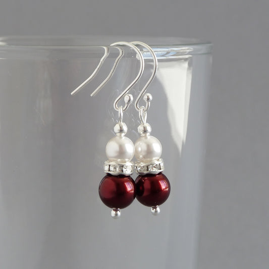 Burgundy Pearl and Crystal Drop Earrings - Dark Red Dangle Earrings for Weddings