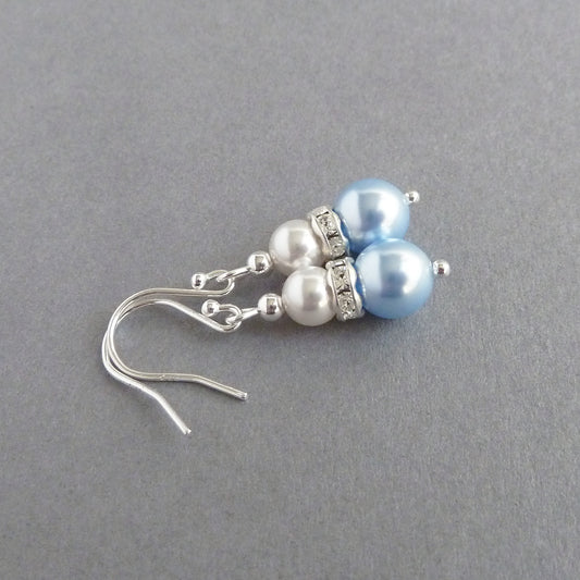 Light Blue Pearl and Crystal Drop Earrings - Pale Blue, Dangle, Bridesmaids Earrings