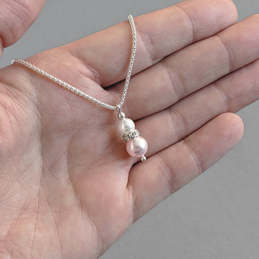 Dusky Pink Pearl Drop Pendant Necklace - Dainty, Pale Pink Necklaces for Weddings