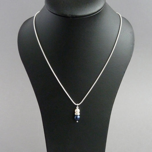 Navy Pearl Drop Pendant Necklace - Dainty, Dark Blue, Wedding Necklaces