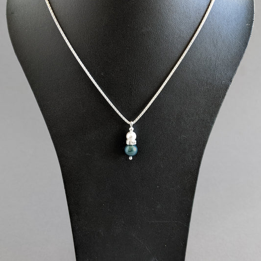 Dark Green Pearl Drop Pendant Necklace - Teal Pearl and Crystal Necklaces