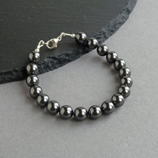 Simple Black Pearl Bracelet - Dark Grey Bridesmaids Bracelets