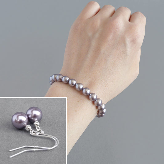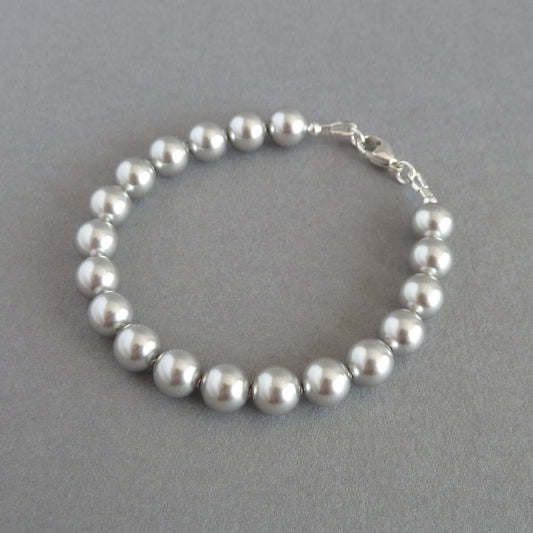 Silver Grey Single Strand Pearl Bracelet - Simple, Light Grey, Bridesmaids Bracelets