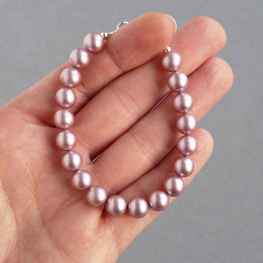 Lilac Single Strand Glass Pearl Bracelet - Simple, Lavender, Bridesmaids Bracelets