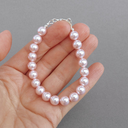Simple Blush Pink Pearl Bracelet - Light Pink, Single Strand, Wedding Bracelets