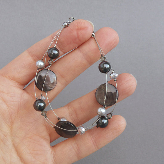 Dark Grey Multi-strand Bracelet - Charcoal Grey, Three Strand Bracelets